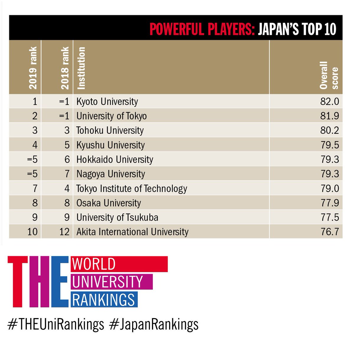 Times Higher Education בטוויטר The Japan University Rankings 2019 Out Now Kyoto University Tops The Latest Japanrankings Which Includes Results From A Student Survey For The First Time See The Full Results